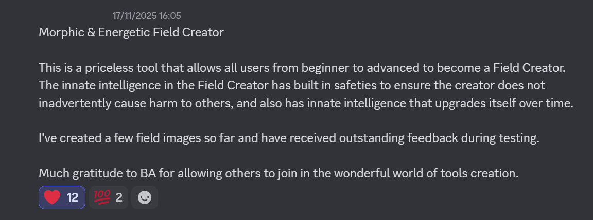 - This tool can never be used or bypassed to create any morphic or energetic field that causes harm, manipulation, or carries malicious intentions in any form.